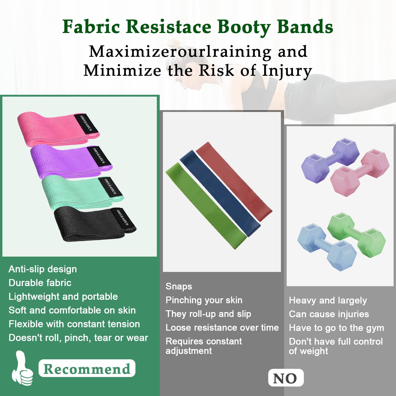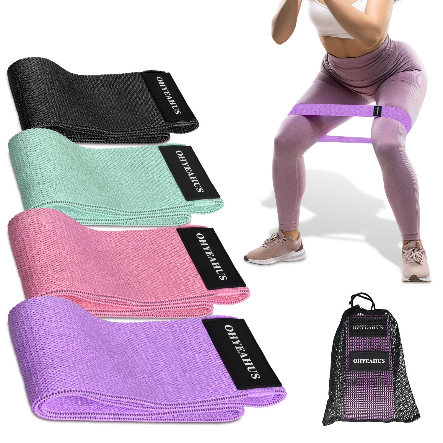 Fabric Resistance Bands Set - Non-Rolling Hip & Glute Workout Bands | ohyeahus