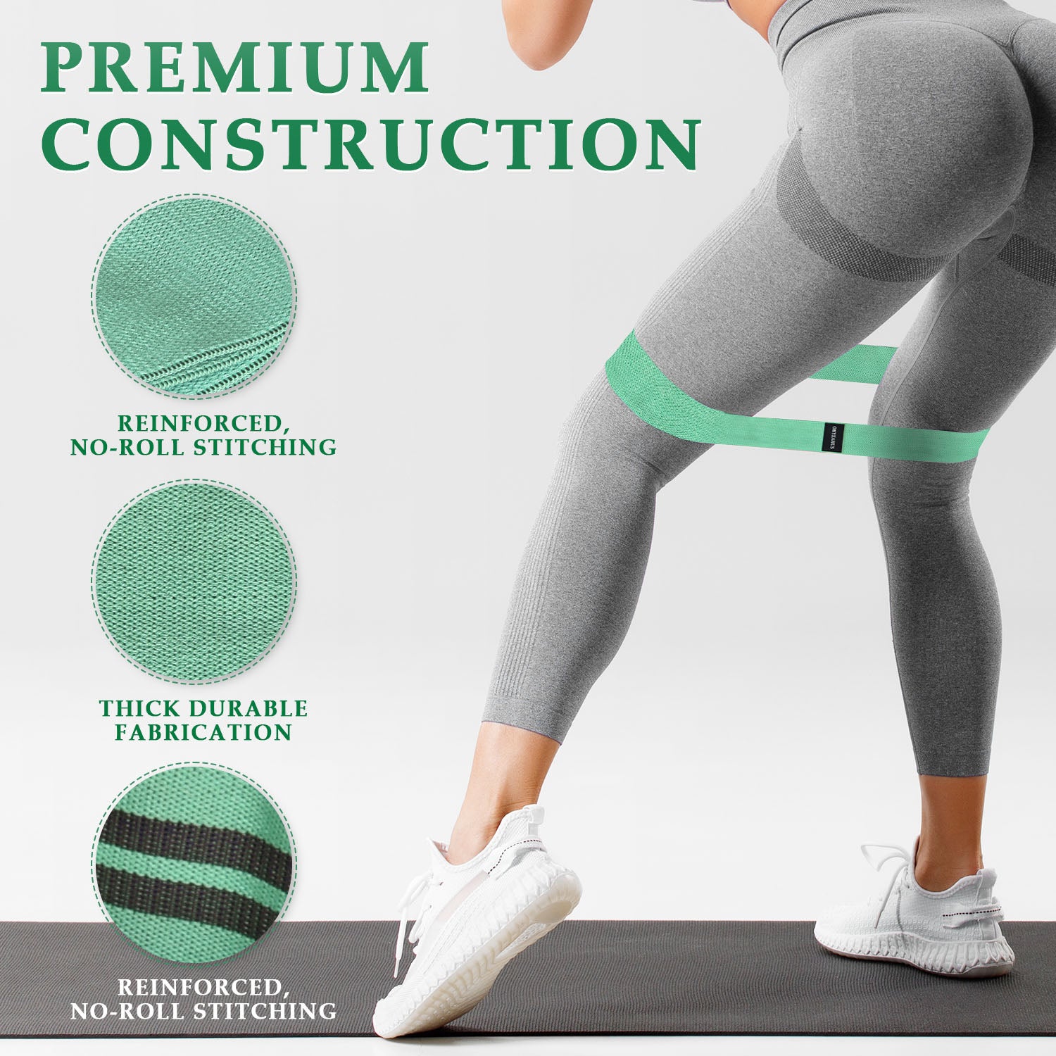 Premium fabric resistance bands for effective leg, hip, and glute workouts. 4 non-rolling circle bands perfect for fitness training. Durable booty bands for home or gym exercises.